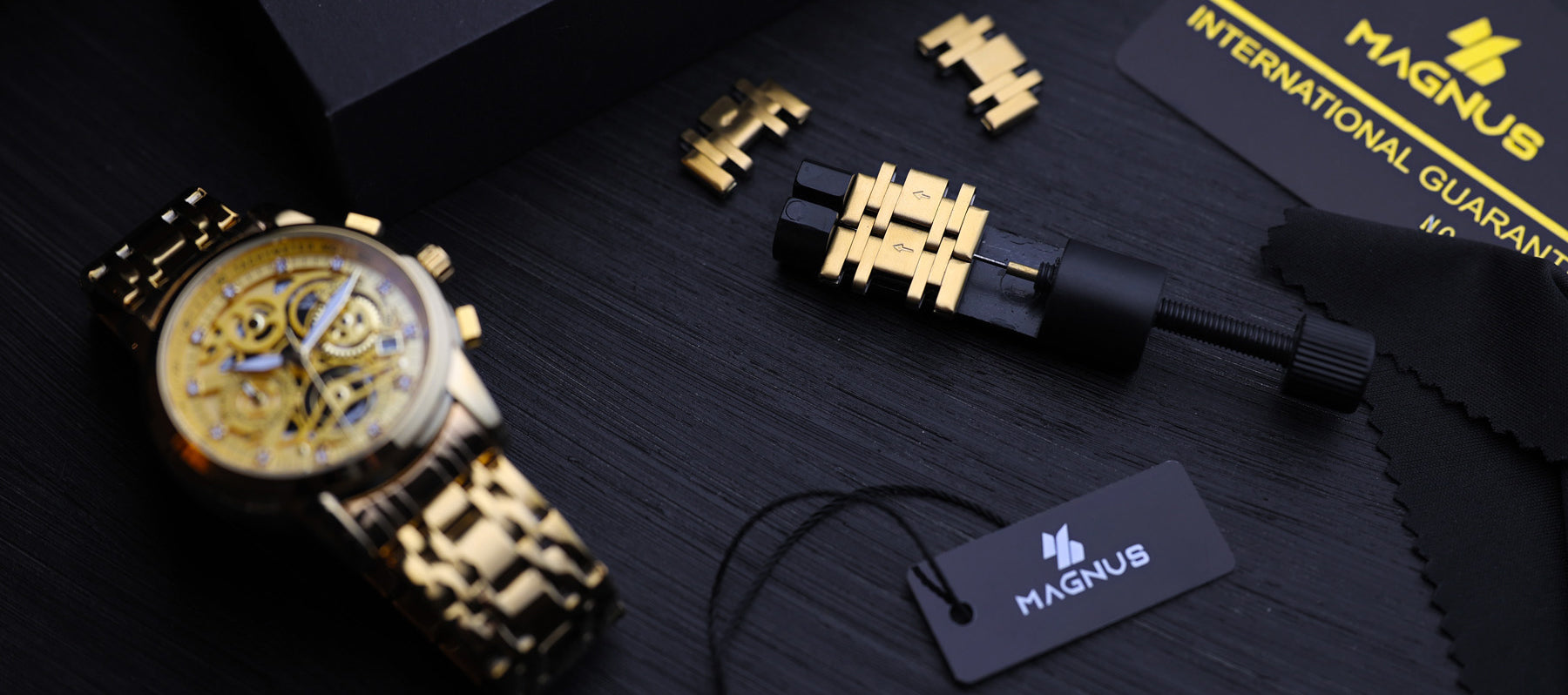 Alle vores ure er beskyttet under begrænset garanti i 1 år fra købsdatoen. Hvis du bliver opmærksom på en defekt i dele eller udførelse i løbet af denne tid, bedes du kontakte os på help@magnus-luxury.com med billeder eller videoer, der viser fejlen.