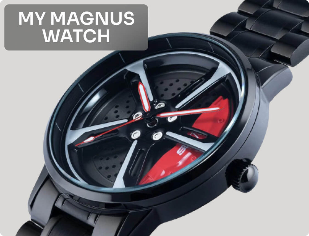 Construisez votre montre Magnus Performance ultime. Choisissez parmi différentes jantes avec étriers de frein, choisissez votre couleur préférée et un bracelet de montre assorti.