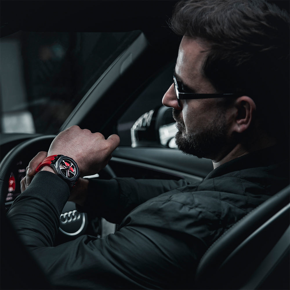 Klockan är inspirerad av motorsport och har iögonfallande dekorationer och en specialdesignad 3D-modellerad urtavla, vilket bidrar till dess unika design och högkvalitativa konstruktion som fångar kraften i motorsport.